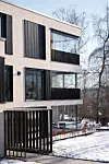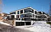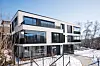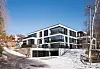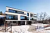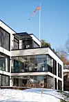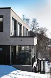 Det tre etasjes høye boligprosjektet er lagt i sør/nord-retning, der byggets bakside går inn i fjellskjæringen mot øst. Det var en balansegang med tanke på å minimere innsyn, men samtidig som målet var maksimalt med utsyn.