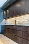 Store fliser, møbelsnekrede innredninger, spesialdesignede lysplaner med lysanlegg fra tyske Flos, skreddersydde kjøkkenløsninger og hvitevarer fra Gaggenau, er blant standardleveransene i hver boenhet.