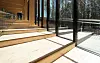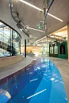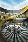 Publikum vil ha tilgang til taket og utsikt over det sentrale atriet via utvendige trapper i to av fløyene. Fabrikken har 2.000 kvadratmeter glassfasader i opptil 14 meters høyde. Besøkende vil visuelt kunne delta i The Plus´ indre liv gjennom de store vinduene og titte inn på virksomheten i alle fire produksjonsvingene – når som helst, døgnet rundt. Det er også glass i de to enorme skyveportene, som er utformet for å likne mest mulig på øvrige glassfasader, og har hver en vekt på sju tonn.