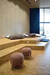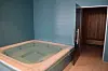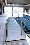 Rullestolrampen som er bygd i denne delen justerer seg etter vanndybden i bassenget. Som en del av bassenganlegget er det også en liten spaavdeling med boblebad, badstue og kalddusj.