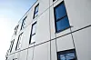 Utvendig fasade er en kombinasjon av Cembrit-plater, innfarget CU – det vil si impregnert trekledning, samt malt betong. Gavlene er malte betongelementer i sin helhet, i kombinasjon med vinduer.
