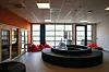Når du kommer inn hovedinngangen, kommer du rett inn i et stort amfi, omtalt som «hjerterom». Bygget er innrettet slik at dette blir som et hjerte og midtpunkt, med klasserom, sosiale soner, idrettshall og personalrom for ansatte spredd i fløyer rundt.