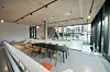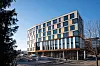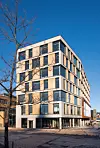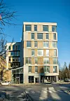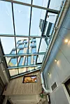 På bakkeplan mellom eksisterende bygg i vest og det nye volumet, er det etablert et glassatrium med gjennomgang øst til vest. Andre til sjette etasje består av møteromsenter, kantine og kontorer. To av etasjene er direkte knyttet til det eksisterende bygget.