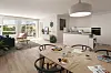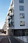 – Vi kjøpte tomta av eierne av Blystadvillaen og har et samarbeide om utomhusområdene, forteller prosjektsjef i JM Norge, Espen Listuen. – Blystadvillaen eier hagedelen, men vi har bruksrett inntil noen meter fra husveggen til villaen. Tilgangen til denne hagen var en forutsetning for å kunne bygge. Selv om vi har en stor takterrasse, ville det vært vanskelig å oppfylle kravet til uteoppholdsareal uten denne hagen, understreker han.