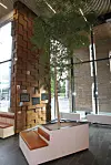 Hun opplyser at det er etterstrebet en varm og jordnær maner i hele bygget, noe de føler at de har fått med de farge- og materialvalgene som er tatt.