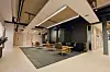 Prosjektingeniør Caroline Witte i Seltor beskriver kontorlokalene som moderne, med et rustikt preg. Dentsu har mest åpent kontorlandskap, mens Simula har mer varierte løsninger og cellekontorer.