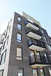 – Prosjektet består av to bygg som er vinklet i forhold til hverandre for å åpne opp mot sør og vest. Dette gir et godt og variert uterom på terreng med utsikt og forbindelse mot Østre parkdrag. Prosjektet består av et mørkt og et lyst teglbygg som har innslag av tre- og platekledning. Variasjon i materialer og farger er med på å skape rikhet og identitet til prosjektet, skriver Sørensen.