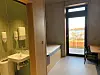 Nedbøren infiltreres også gjennom grønne tak. Boligkvartalet er mindre enn etasjene under, og har en betydelig takterrasse. Utenfor denne er taket tekket med sedum, det samme er toppetasjen. Beplantningen skaper også et varierende innslag av vegetasjon og biodiversitet, og danner en fin overgang mot grøntstrukturen rundt Mosvannet.