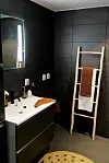 På grunn av den skrånende tomta er det rikelig med takhøyde i store deler av kjelleren.