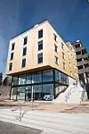Naturlig nok er det forskjellige ferdigstillelsesdatoer for de ulike byggene i Grandkvartalets tre byggetrinn. Høyblokka inneholder 13 av i alt 91 leiligheter og ble overlevert før jul i fjor. Slik det ser ut per i dag, er hotellfløyene mot Storgata og bebyggelsen langs Romberggata mest iøynefallende. I tillegg er høyblokkas ni etasjer (to av dem er næring) godt synlig i bybildet.