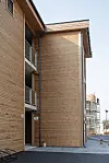 Det er videre brukt Kebony på fasader, betong på svalganger, fliser i trappeløp og aluminiumsbeslag utvendig på alle vinduer gir et vedlikeholdsvennlig bygg. Det er akustiske plater i trappeløpet. Både leiligheter og trappe- og heishus er brannsikret ved sprinkling og alarm.