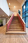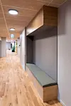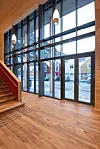 – Besøk til Sognefloren, låven som Sigrun Dale har innredet til bakeri og servering i Mo sentrum, gav inspirasjon til å bruke trevirke i sentralrommet med dobbel etasjehøyde. Sentralrommet har utsikt mot Mobryggja og vannspeilet i Mofjorden, sier Beite.