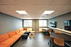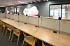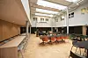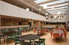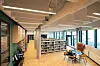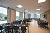 Kantinen har et atrium som går over to plan og en messaninetasje. I kantinen er det perforerte plater i vegger og spilekledte vegger med grå duk bakom. Det gir lavere kontrast enn svart duk for svaksynte.