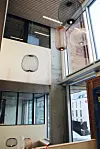 Bygget er satt opp på en relativt trang byggeplass, tett inntil jernbanelinjen på baksiden, og et kollektivknutepunkt med en mye trafikkert vei og andre nabobygg like i forkant av bygget. Mot vest har man bygget kloss inntil det nye hotellet.