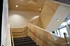 Det pågår fortsatt noen innredningsarbeider, men innflyttingen er i full gang og bygget er i ferd med å bli tatt i bruk. Han påpeker at de har lagt vekt på å benytte norske materialer og lokale byggetradisjoner, med mye bruk av tre, terrasso og skifer, kombinert med en frisk fargebruk.