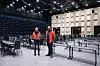 – Det er et slags flytende gummibelegg som er valgt på grunn av slitestyrken. Den opprinnelige planen var parkett. Men på grunn av teleskoptribunen som veier ti tonn og rulles ut på små hjul, ble Acrylicon valgt isteden, sier Madsen.