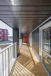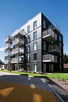 – Bygningene er plassert slik at de optimaliserer solforhold og utsikt på tomten. Det arkitektoniske motiv som preger de fleste fasadene er balkonger som er sidestilt fra hverandre oppover etasjene. Dette gir dobbelthøye situasjoner over de individuelle balkonger hvilket gjør opplevelsen av balkongen mer luftig, samtidig som det gir mer dagslys inn til oppholdsrommene inne i leilighetene. Det var også viktig for oss at de aller minste leilighetene skulle bli gode. Dette resulterte i at de fleste små leiligheter, på 36-42 kvadratmeter, ble plassert som hjørneleiligheter. Det skapes en merverdi i opplevelsen av de minste stuene når det kommer dagslys inn fra to sider, og det er vi veldig fornøyde med å ha fått til det, sier Tjessem.