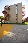 Arkitektonisk ble det også lagt vekt på å differensiere bygningene i materialer og farger, dette på grunn av at alle tre bygningene er rasjonelt satt sammen av en leilighetsmiks som er speilvendt i ulik grad mellom byggene.