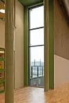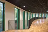 Tilbygget har robuste og vedlikeholdsvennlige materialer. Hovedinngang ligger på plan 3, nær skolebygget. På plan 1 er det inngang til garderober. En heis sikrer universell tilgjengelighet. Brannsikring er ivaretatt med fullsprinkling. Det er solavskjerming i glasset mot sør på plan 1 og plan 2. mot vest er det grønne vertikale lameller. På sør- og vestsiden av tilbygget er det en nyasfaltert vei.