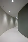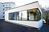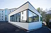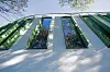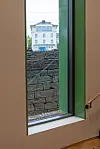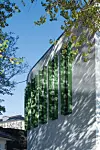 Tilbygget er plassert så lavt som mulig i terrenget. Det består av en tilnærmet kvadratisk del og har en buet fasade mot vest.