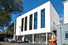 Utformingen av nybygget tilpasser seg det kulturhistoriske miljøet med Ole Landmark sitt nyklassisistiske hovedbygg fra 1937. Nybygget er brutt opp i ulike volum og har en nedtrappende avslutning mot vest. Hallvolumet ligger opp mot det historiske bygget med vindusfelt som går over to plan for å reflektere det bakenforliggende dobbelthøye rommet. Bredden på vindusfeltene tilsvarer vinduene på hovedbygget. Hallvolumet omsluttes av en organisk buet form som henvender seg til parkelementene som steinmuren og trærne langs veien samt Nygårdsparken på andre siden av fylkesveien.