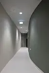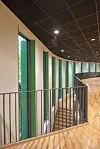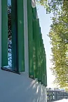 – I buen foregår byggets sirkulasjon og bevegelse mellom etasjene slik at bevegelsen inne i bygget kommuniserer med bevegelsen og det livet som foregår på utsiden. Buens fasade har en rekke vertikale vinduer med innfestede lameller som gir en dybde og stofflighet til fasaden. Lamellene er med på å åpne og lukke innsynet når man beveger seg rundt bygget, som gir ulike glimt av aktiviteten som foregår på innsiden. Fargen på lamellene er tilsvarende som vinduene på hovedbygget, Villa Florida og søsterhjemmet. Fasadene er utført i puss i tilsvarende farge som de øvrige byggene på anlegget. Den grønne fargen på de vertikale vinduslamellene er tilsvarende som vindusfargen på de historiske byggene. Det er valgt å bruke grønne betongsøyler i prosjektet for å koble seg til det grønne i omgivelsen både i form av parktrær og vindusomramming. Den grønne fargen er et tema som er videreført i interiøret, sier Bergseth.