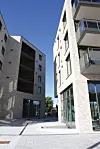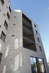 – Fasadene har teglstein og noe innslag av trepanel. Det er benyttet både utenpå hengte og inntrukne, romslige balkonger, sier Kristiansen.