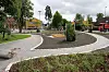 «Beliggenheten er sentral, og skolen inngår som en del av Rådhusparken. Bygget består av flere volumer som er sammensatt på en leken måte. Totalt er skolen ca. 15.200 kvadratmeter stor, men de enkelte volumen er ikke mer enn to eller tre etasjer over bakken. Ved dette grepet tilpasses bygningsmassen den omkringliggende småhusbebyggelsen og understreker konseptet: «En skole i parken». Derfor er også flerbrukshallen nedsenket i terrenget, for å tone ned det store volumet.