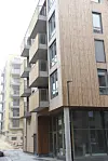 Prosjektet inneholder også noen næringslokaler i første etasje. Bare halvparten av de 78 leilighetene har parkeringsplass i garasjekjelleren.