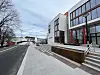– Den hvite teglsteinen med retningsendringer og ornamentering i teglkledningen gir en sober, men samtidig rik detaljering – og man kan ane en relasjon til Rådhuset på motsatt side av Sandvikselva, sier hun.