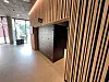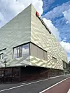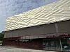 Veggene er utført med veggkassetter og fasaden er i aluminium, og har en gullaktig farge som endrer seg etter lyset. Fasaden kan også lyssettes.