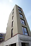 – Fasaden i første etasje har teglstein, mens resten av bygget har fasadepuss, sier Aamodt.