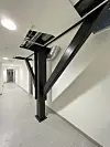 – Underveis er det revet en god del innervegger, men alt av fasader og tak ble stående. Alt er selvsagt oppjustert til dagens krav, og det er blant annet satt inne nye vinduer. Det er lagt sandwichelementer på utsiden av tidligere fasader, og det er satt inne noen flere takvinduer for å sikre mer daglys inn i ulike deler av bygget. Det tekniske anlegget er selvsagt modernisert, både når det gjelder ventilasjon og elektro, samt at vi måtte forsterke takkonstruksjonen for denne typen bruk og for å sikre at taket tåler lastene som kreves. Dette var en relativt omfattende oppgave, der vi måtte gå noen runder for å finne en optimal løsning, forteller anleggsleder Simon Almås i Betonmast Vestfold-Buskerud.