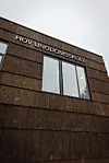 Fasadene er utført med vertikal kledning oppdelt i horisontale felt med forskjellig høyde og lagt som en tradisjonell vestlandskledning i storformat.