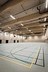 Den er bygget i massivtredekker, lavkarbonbetong, limtrekonstruksjon, lett-tak og prefabrikkerte ytterveggselementer. Med solceller på taket, og et stort uteområde med blant annet fotballbane og treningsapparater.