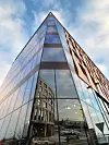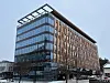 Bygget, som er rektangulært, har åpne kontorlandskaper og en rekke møterom og grupperom.