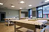 Der det er hovedredningsveier er massivtre innsatt med brannhemmende impregnering, mens det andre steder er satt inn med Osmo hardvoksolje.