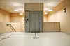 Perforert bjørkefinér er brukt som akustisk regulerende og dekorativt materiale i store rom som idrettshall og aula.