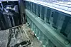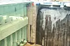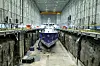 Da vi var og så på hallen, var brønnbåten Ro Fjord inne til vedlikehold. I bunnen av dokken var det helt tørt. Båten ble holdt på plass av kraftige støtter mot veggen.