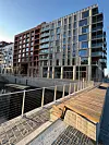 Snart vil også næringslokalene i første etasje og kjelleretasjen i kvartalet bli ferdig innredet og klare for innflytting. Her kommer blant annet en Meny-butikk, en restaurant, et apotek samt Vinmonopolet. Det skal også komme et treningssenter, og PwC flytter inn på 2.400 kvadratmeter kontorlokaler.