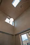 – Vi så at det ikke fantes noen som kunne garantere for en slik leveranse. Løsningen ble en tradisjonell stål- og gipsleveranse for resepsjonsområdet hvor vi har pusset gipsplatene med leirepuss.