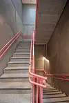 Det er en bratt tomt, så mens den ene siden av bygget er direktefundamentert til fjell, står den andre siden på peler til fjell opp til 15 meter under bunnplaten.