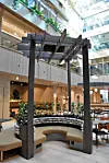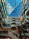 – Det er som et nytt bygg. Det innvendige atriet, midt i bygget, var tidligere uteareal med tykke murvegger og små vinduer på alle sider. Nå er de tette veggene revet, og det er isteden satt inn glassvegger fra gulv til tak. I tillegg er det bygd glasstak over atriet, som gjør at rommet nå er en del av bygget, og lys slipper inn fra alle kanter. Området er nå langt mer åpent og tilgjengelig, og fremstår som hjertet av bygget, sier hun.