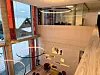 Arkitekten har i utformingen av bygget lyktes i å skape transparente etasjer, uten preg av lange korridorer, selv der kontorene ligger på rad og rekke.
