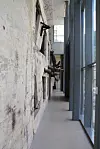 – Utvendig er det benyttet et STO puss-system, der det på deler av bygget er benyttet en overflatestruktur som ser ut som bordforskaling. Dette er gjort for å skille mellom ny konstruksjon og konstruksjoner som er kopi av tidligere bygningsmasse. Innvendig har alle overflater enten ordinær puss, som det var i det originale bygget, eller STO puss-system. Hovedfasaden mot nord og øst er i glass og du får her et fint innsyn til ruinveggene. Bygget føyer seg fint innunder Gamle Vemork og med gjennomført innvendig belysning skinner Tungtvannskjelleren som en diamant i foten av Gamle Vemork Kraftstasjon, mener Lien.