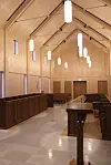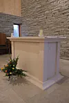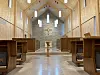 Kirken har benker for 40 besøkende. Foran i koret er det syv korstoler på hver side der munkene sitter når de møtes til tidebønn seks ganger daglig, første gang klokka 04.30 på morgenen og siste klokka 20.15. Kirkebenkene og korstolene i solid eik er laget i Polen. Det hvite høyalteret er i massiv kleberstein fra Frankrike.