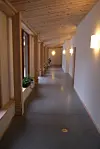 Bæresystemet i det øvrige av klosterkomplekset er synlig limtre og massivtre.