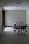 Hovedinngangen ligger på øvre plan. Her er det adgang til et publikumsområde med sitteplasser for 87 personer og en mesanin for stående. Øvre plan rommer også et stort styrkerom, møterom, kontorer, et sosialt rom på 114 kvadratmeter og kjøkken.