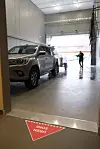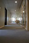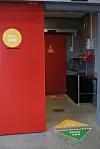 I debriefrommet er det store vinduer som gir full oversikt over vognhallen, og kontakt mellom administrasjonen og den operative virksomheten.