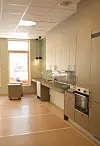 – Vi synes byen er blitt for hvit og grå og har gitt bygget en klar gulfarge, inspirert av trondheims-paletten. Innvendig skal klare farger stimulere til aktivitet. Utstrakt bruk av treverk gir en varme og materialitet som demper institusjonspreget. Pasientene, mange av dem gamle, skal være der bare i kort tid og derfor har vi vært opptatt av at senteret skal være lett å orientere seg i, sier Inger Anne Landsem.